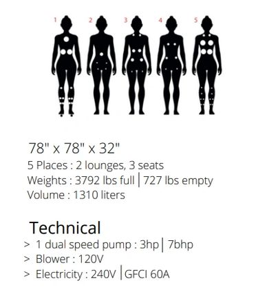 The O552C stands out as an exceptional family spa that doesn't break the bank. With its 2 reclining seats and 3 seating configuration, you can indulge without overspending. Featuring 52 jets powered by a 2-speed 4HP (7BHP) pump and an air pump (blower), it delivers a revitalizing massage. Plus, a distribution valve allows you to focus the power where you need it most.
